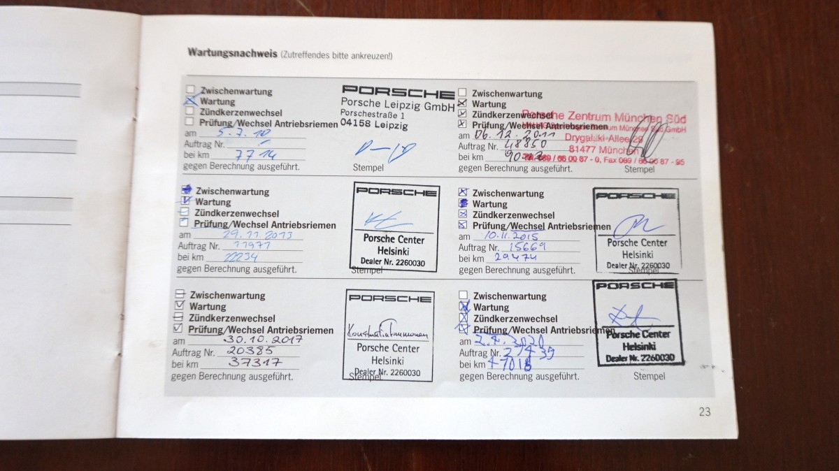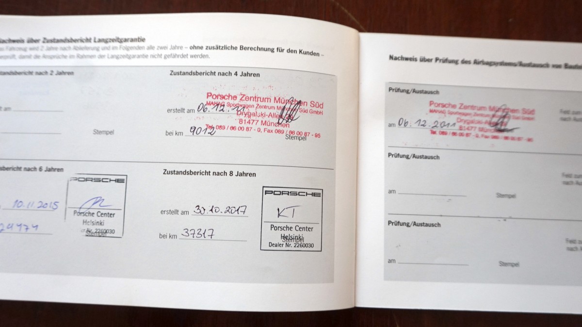 10/2017 service, 111-point check for extended warranty, Porsche Center Helsinki, 37319 km