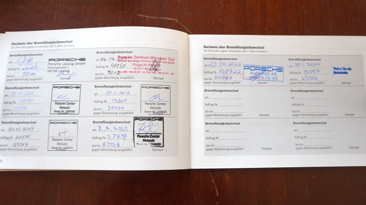 4/2020 service, spark plugs, Porsche Center Helsinki, 47018 km