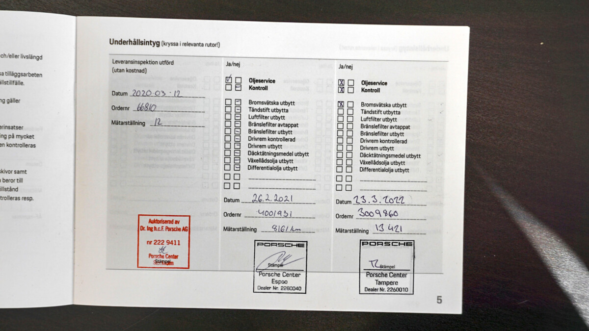 3/2022 huolto, Porsche Center Tampere, 13421 km