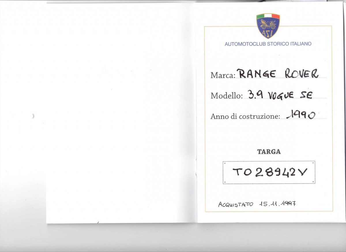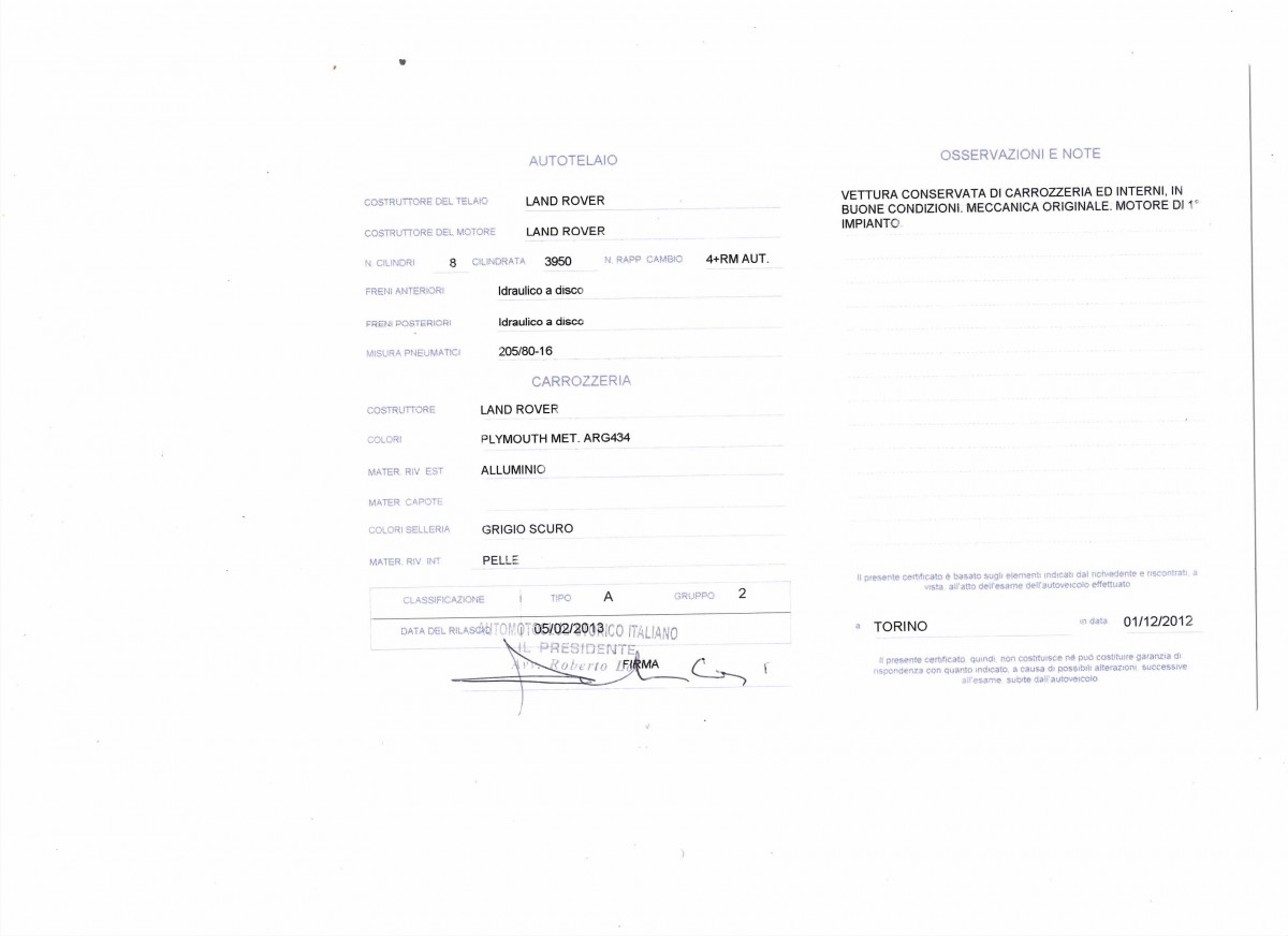 12/2009 certificate of build month 8/1990 – Land Rover Italia