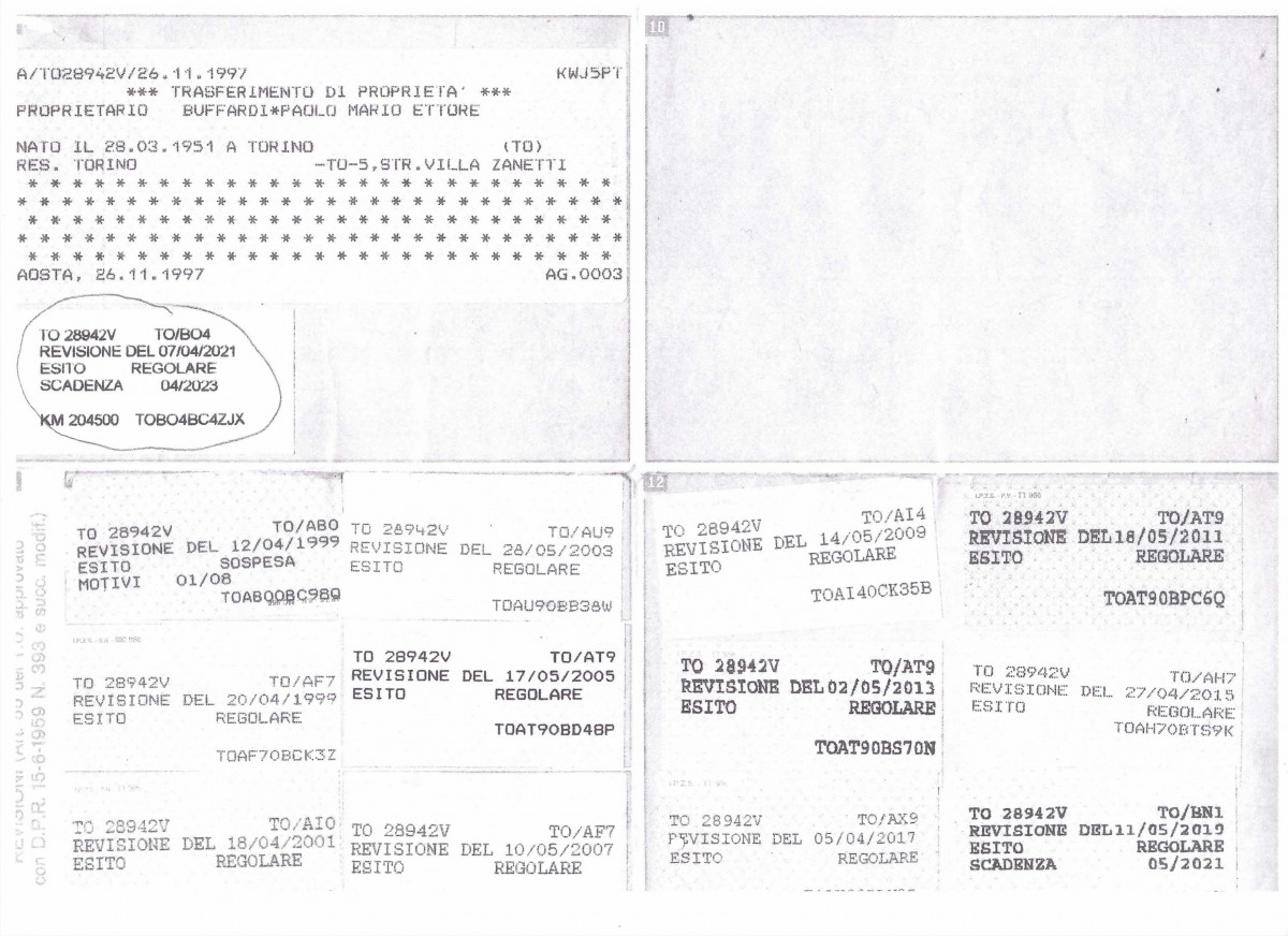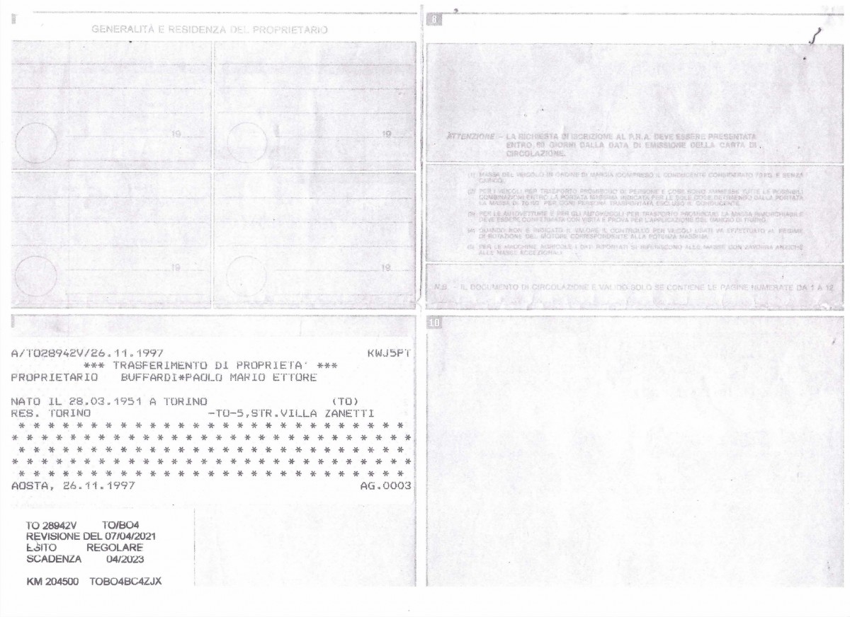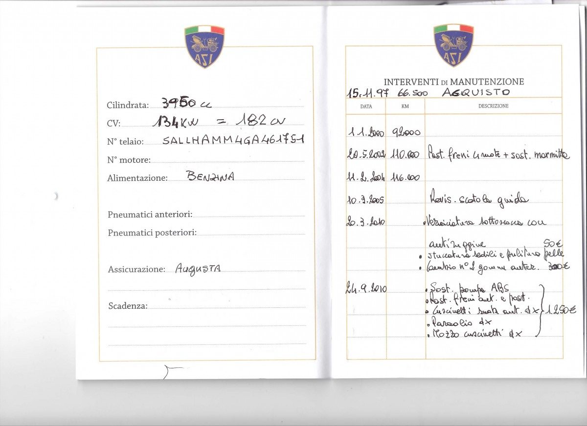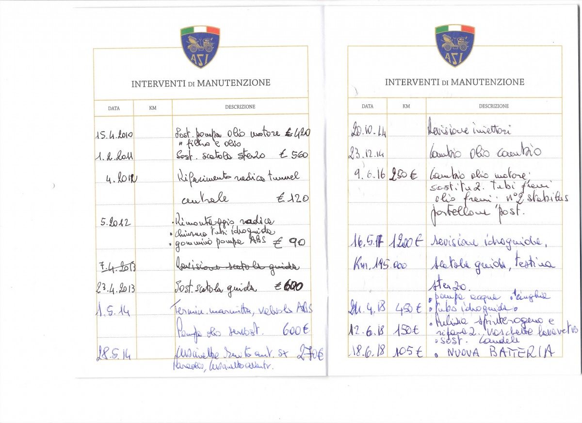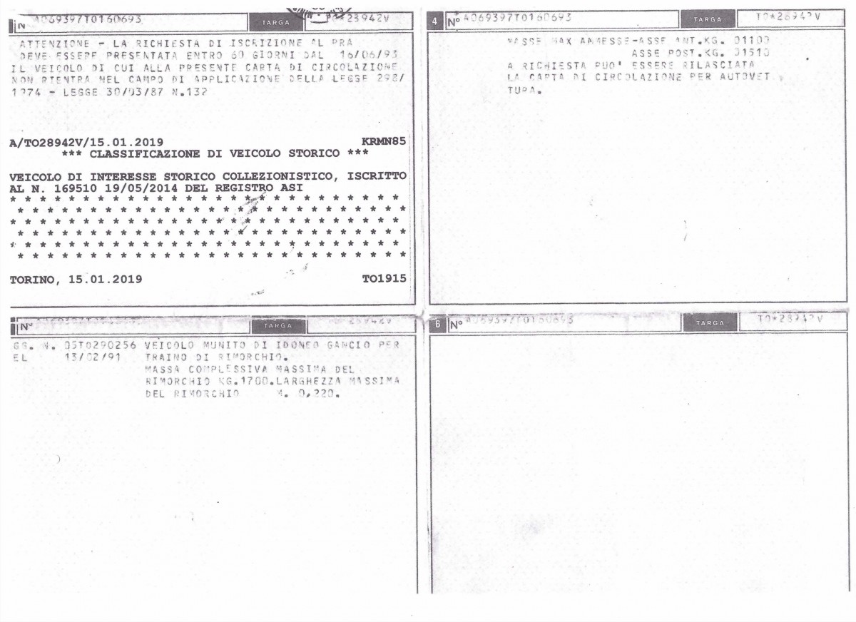 Historic registration in Italy since 2014 by Automotoclub Storico Italiano (ASI).