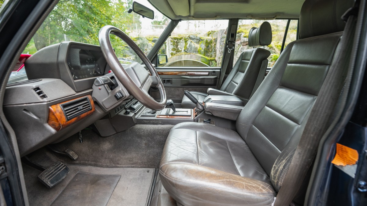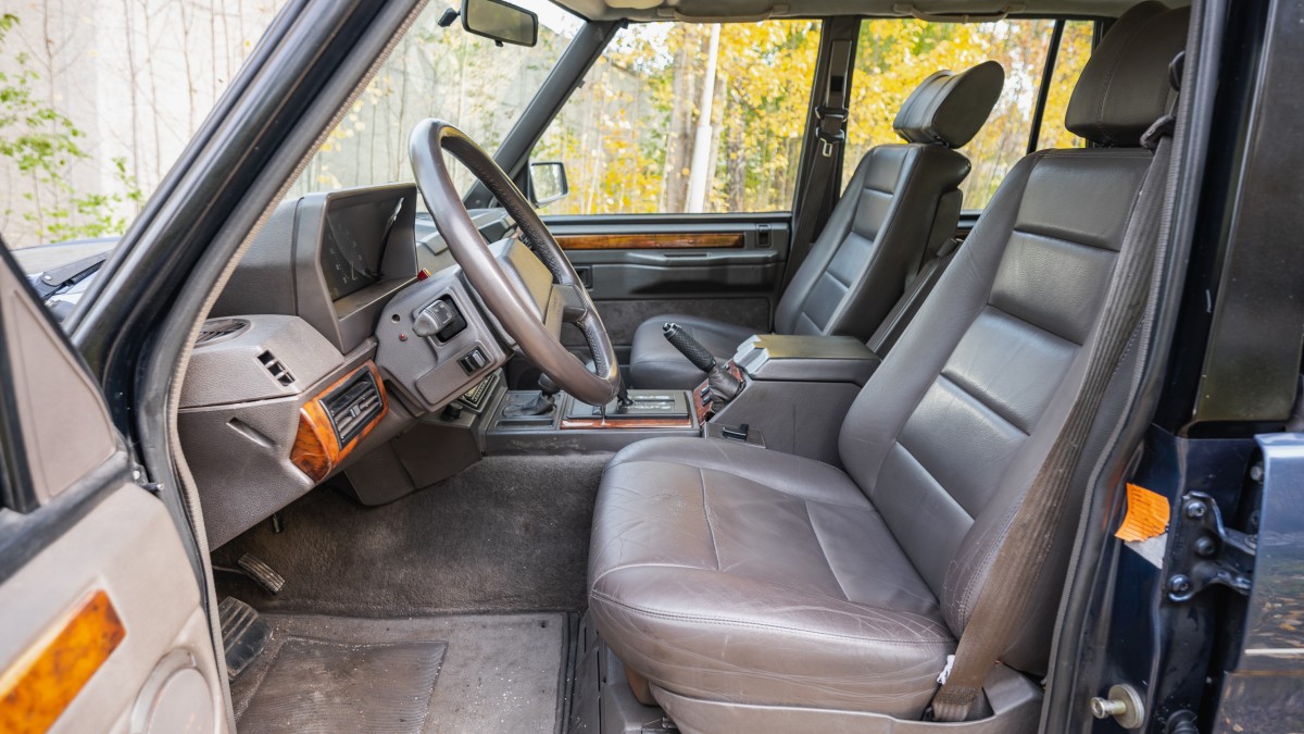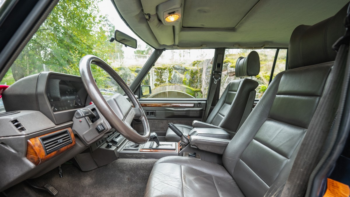 The Vogue SE version of the Range Rover was introduced in 1989 with comprehensive standard equipment including leather interior, air conditioning, electric front seats and sunroof.